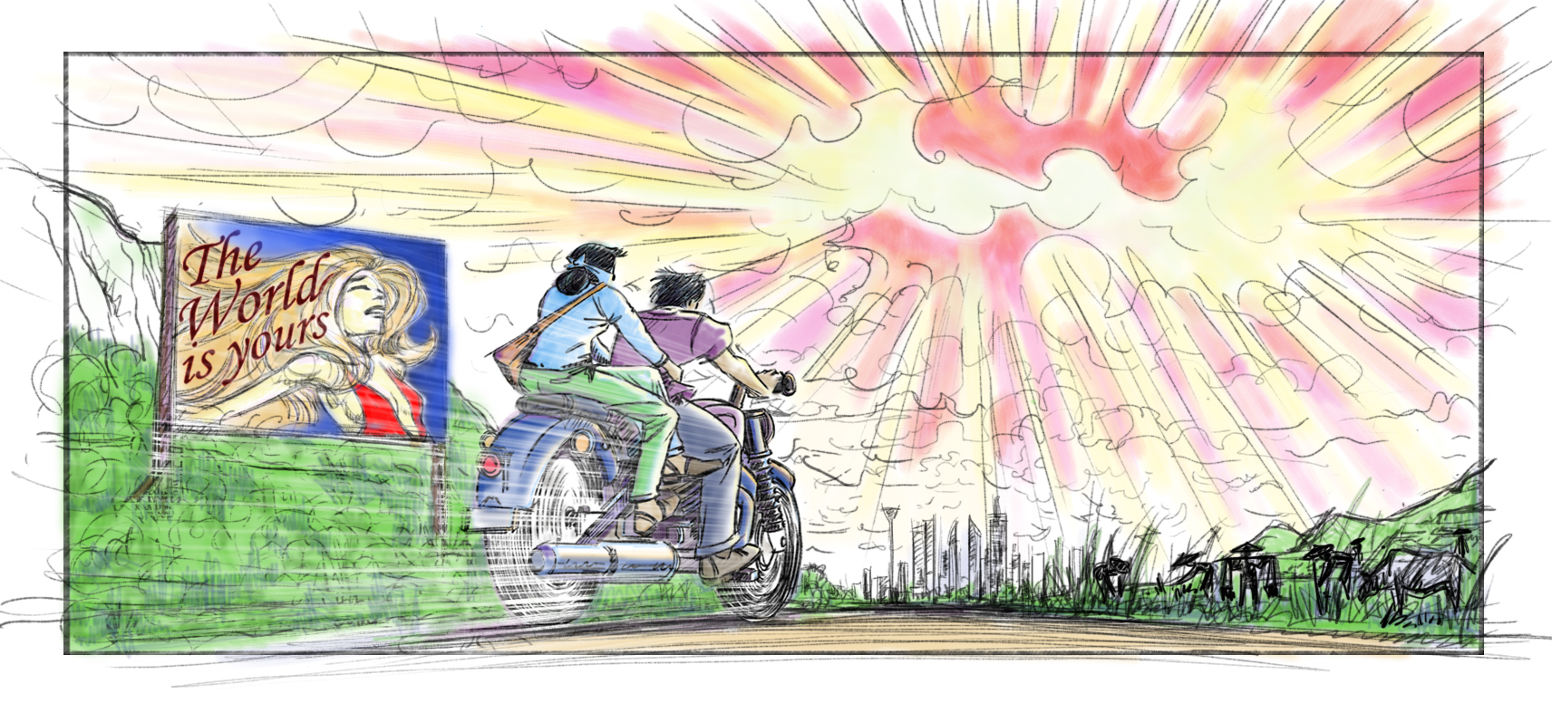 Here’s another piece drawn by myself and coloured by Tine, this time a concept for a Science Fiction film set in Hanoi.